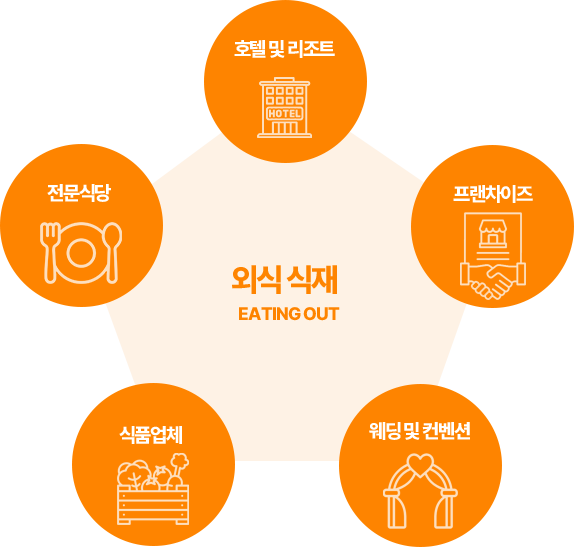 외식, 매점 운영 업체에게 선별된 최상의 품질을 유지한 상품을 가격거품을 제거한 합리적인 가격으로 공급하고 있습니다.